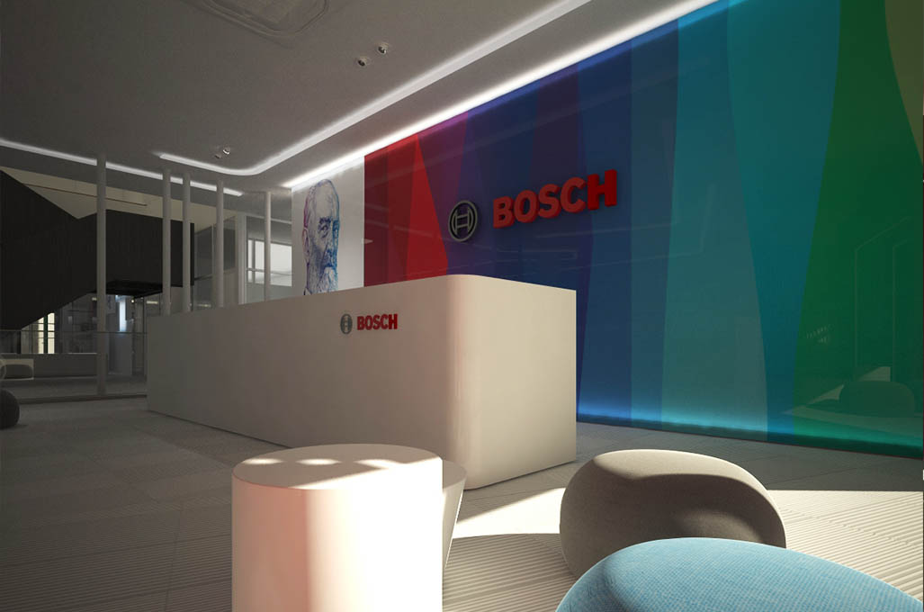 Study proposal for the entrance, reception, waiting area and the showroom of Bosch at Koropi.